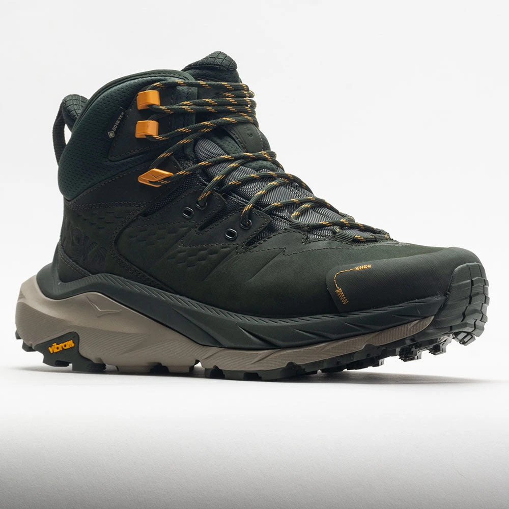 Peak performance meets luxurious comfort in the Hoka Kaha 2 GTX. This durable and cushioned hiker is consciously crafted with recycled materials, leaving a lighter footprint with every step. Stay dry in wet conditions in the GORE-TEX waterproof upper, while the Vibram® Megagrip outsole provides reliable traction. Enjoy smooth strides from the HUBBLE® heel with SwallowTail™ geometry. Named for the Maori word meaning strength and support, the Hoka Kaha 2 GTX is true to form!